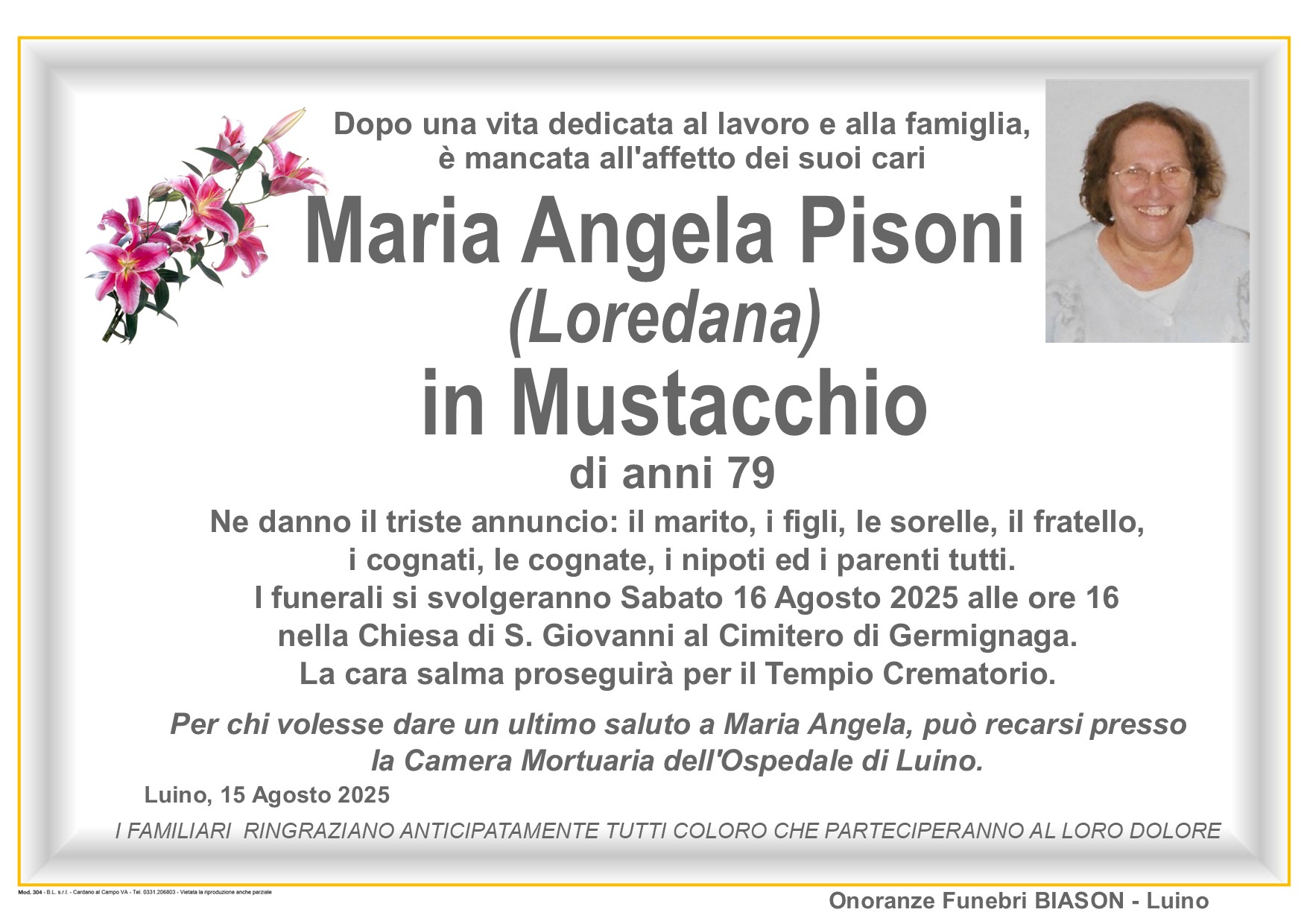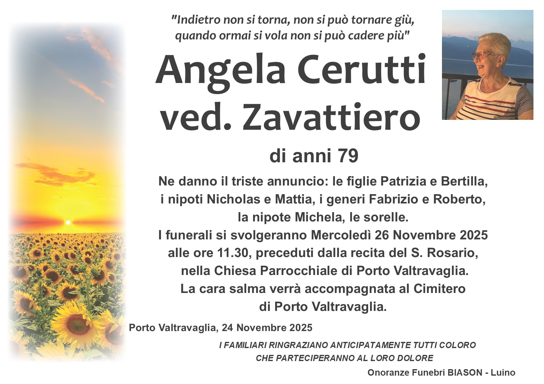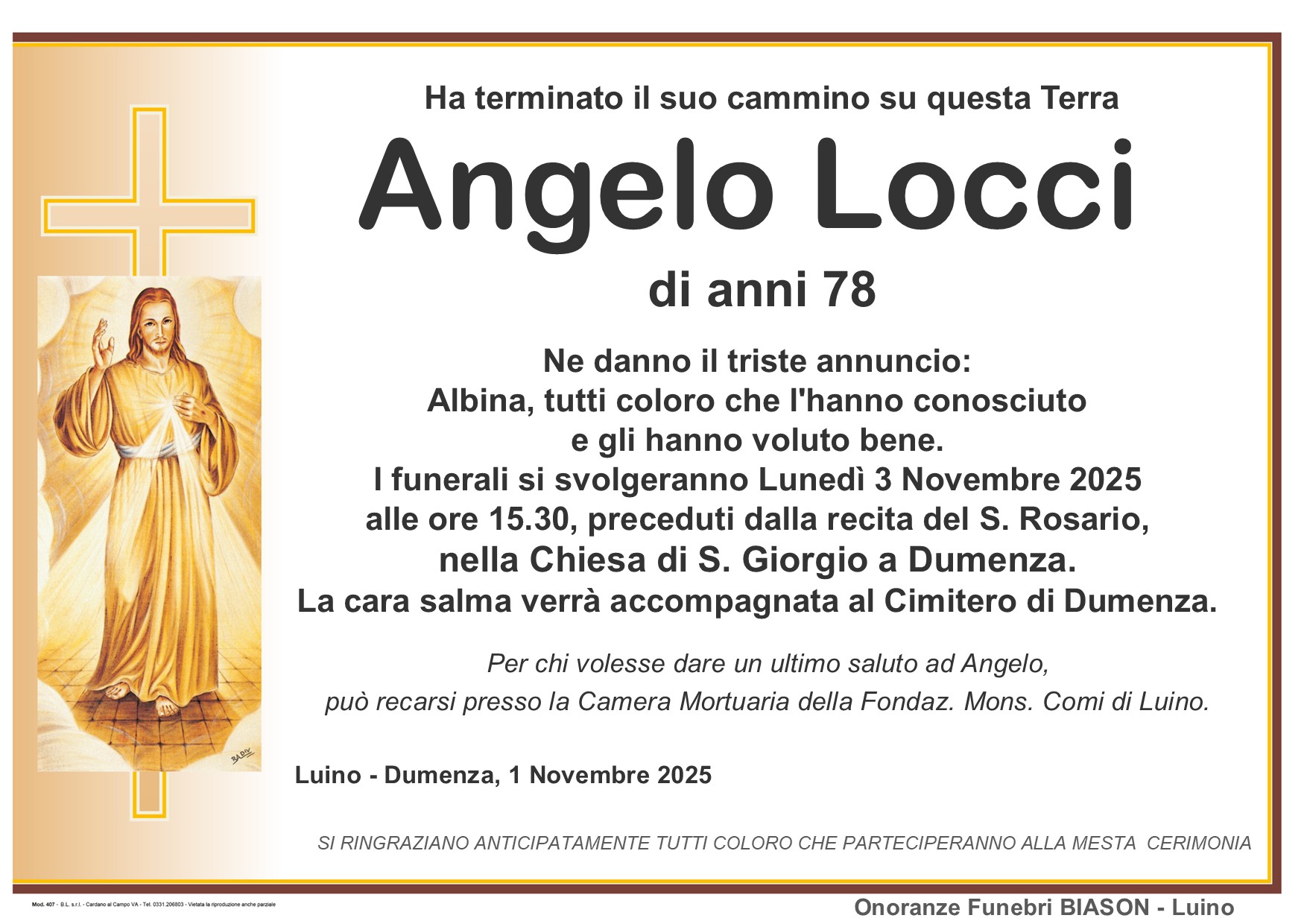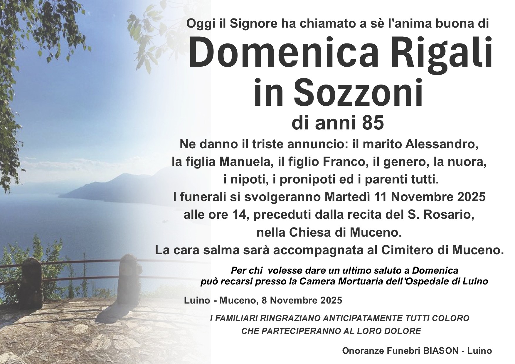info@onoranzefunebribiason.com | +39 0332 53 67 45 | Via Delle Motte 8, 21016 Luino