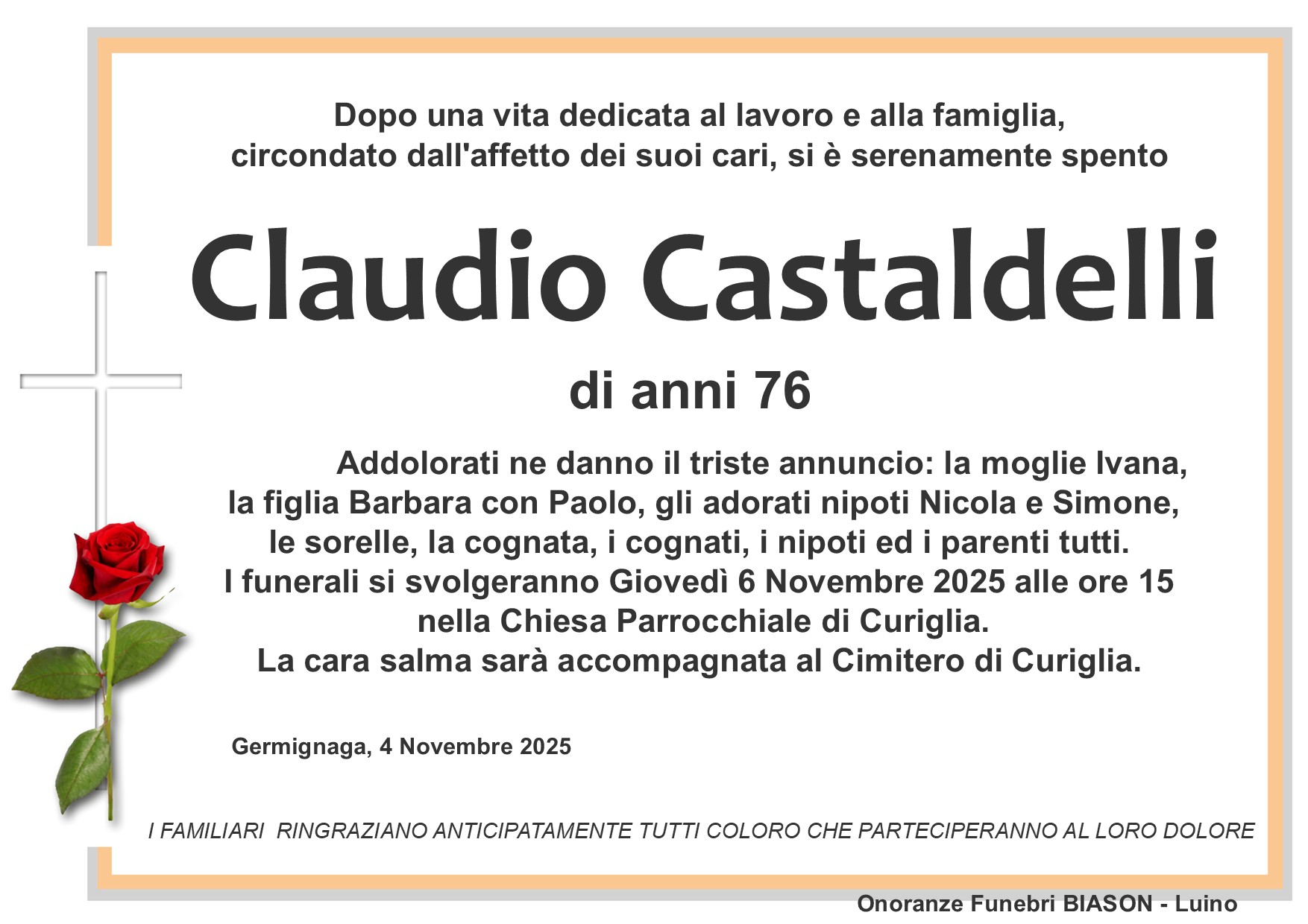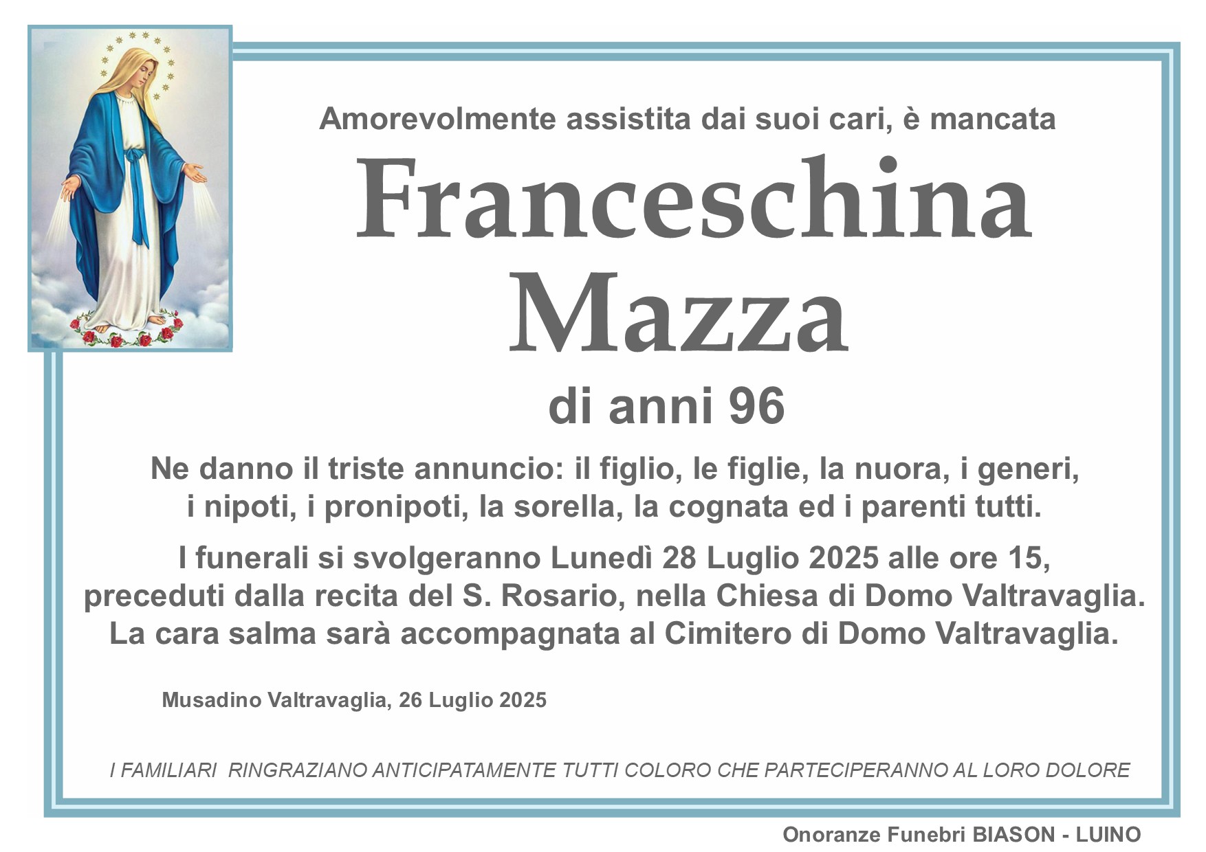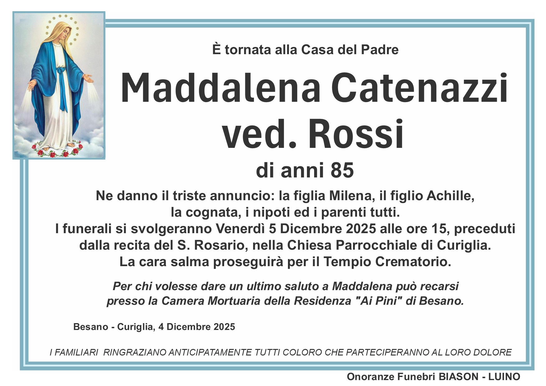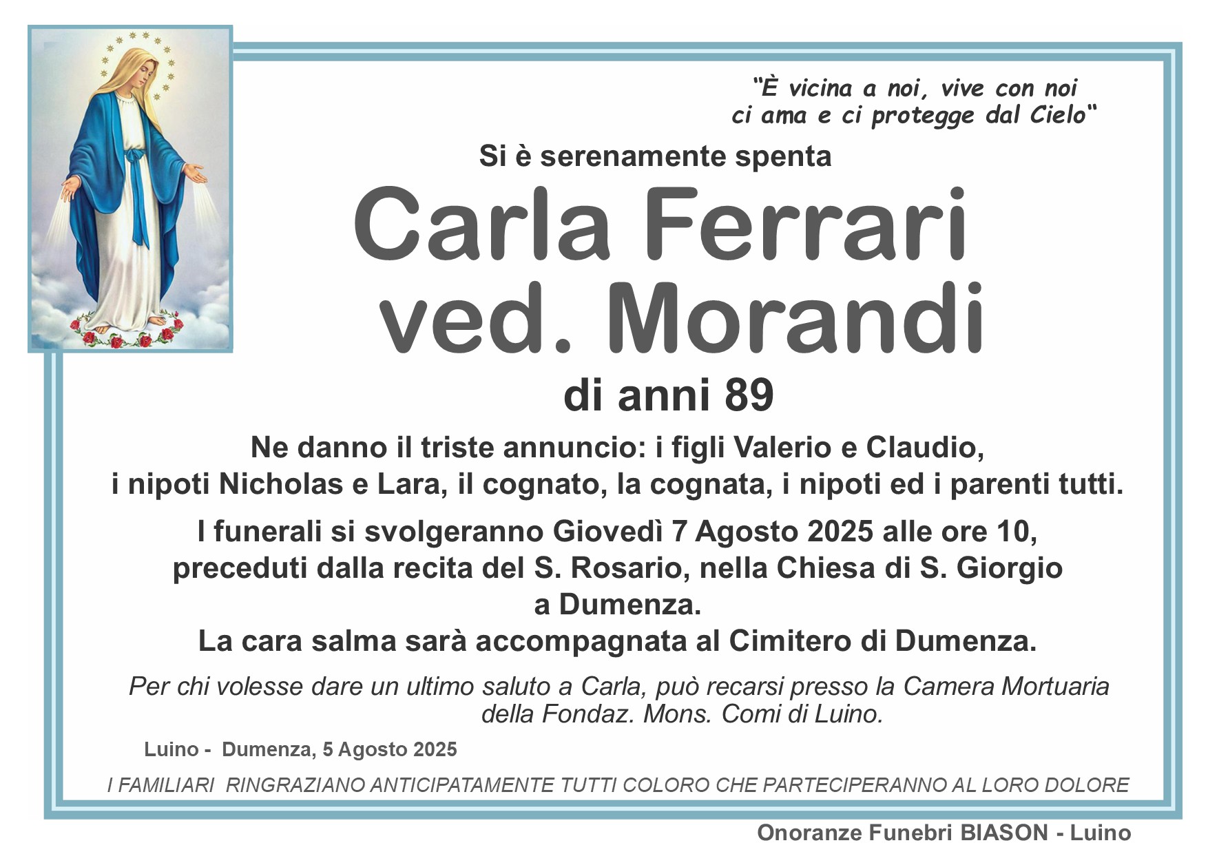 info@onoranzefunebribiason.com | +39 0332 53 67 45 | Via Delle Motte 8, 21016 Luino